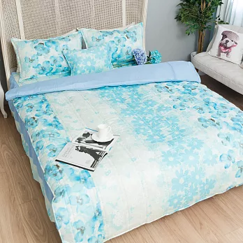 精緻純綿舒適好眠六件式雙人床罩組-水墨藍花