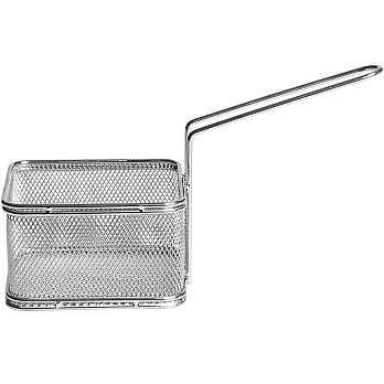 本商品一件入。剛炸好的炸物,可以詼諧有趣的方式呈現在餐桌上,推薦您此款以炸籃外型為設計的不鏽鋼點心籃,長方型空間可擺放雞塊、薯塊、雞米花、洋蔥圈等,網洞設計透氣不悶住食物,亦可濾掉多餘油份更健康;提把設計讓您在家人與朋友間傳遞喫食拿取更方便;適合聚會宴客、餐廳擺盤使用。也可發揮您的創意,成為迷你置物籃或是收納耳環飾品等小物。鏤空握把可吊掛收納省空間。